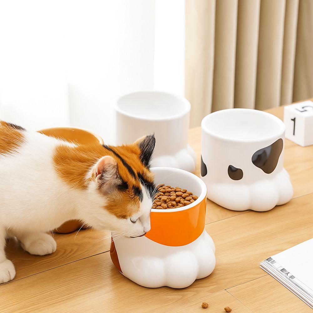 Large Capacity Ceramic Cat Bowl Slanted Mouth High Foot Bowl Cute Water Bowl For Dogs and Cats