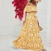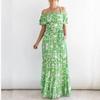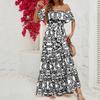 Women's Dress Summer European and American New Women's Clothes off-Shoulder Short Sleeve Print Ruffles Maxi Dress