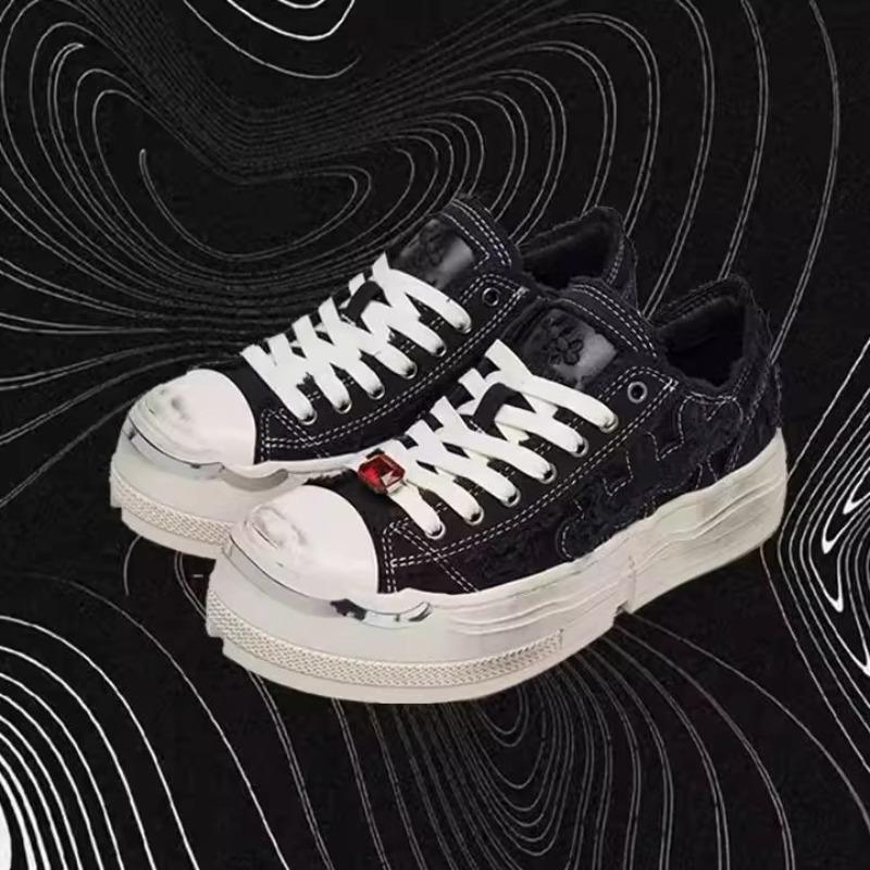 [Mao ist nicht leicht wiedergeboren zu werden Nein. 1, milchtee-weiße Canvas-Schuhe, Low-Top-Plateau-Dirty-Schuhe, Plateau-Schuhe.