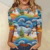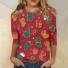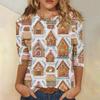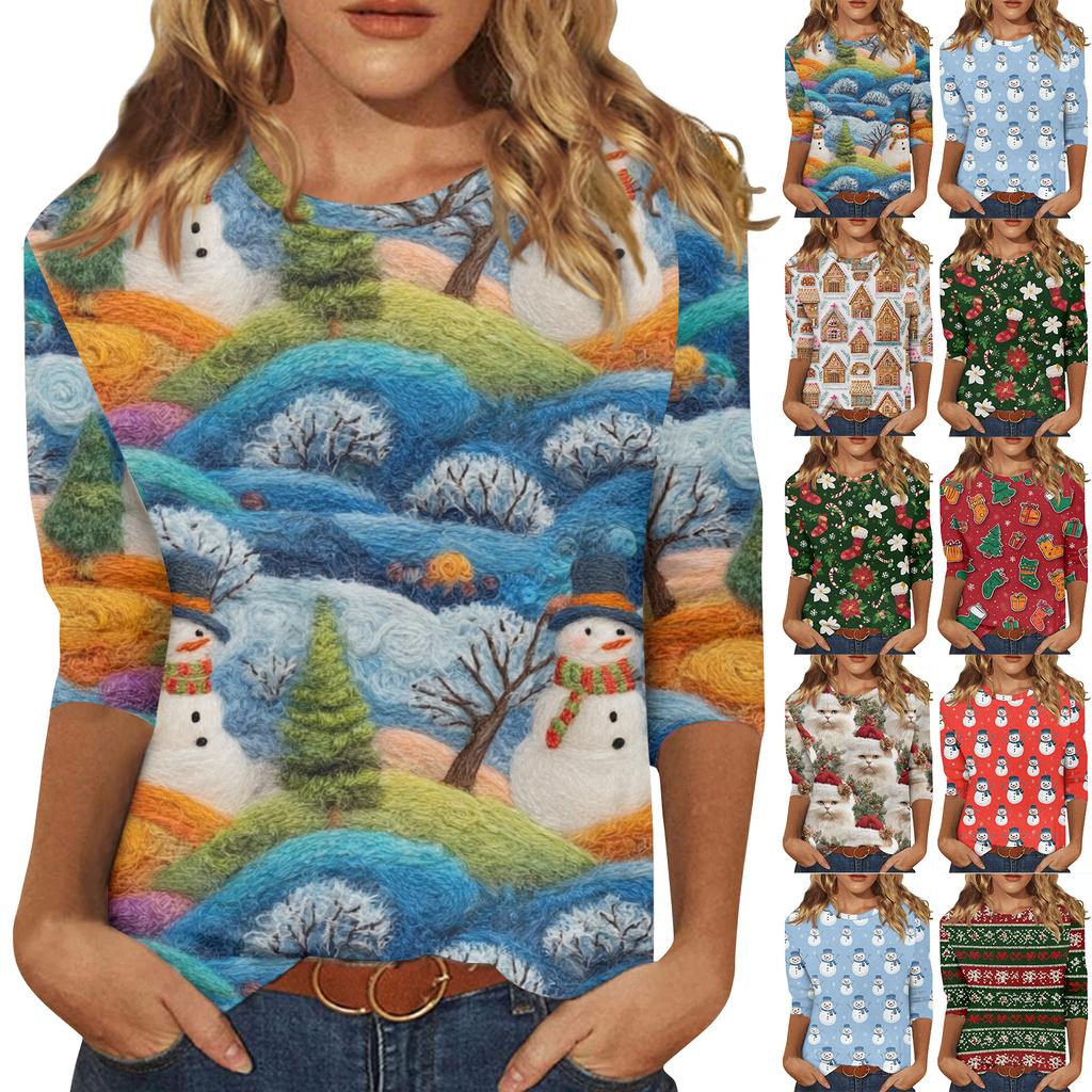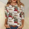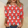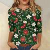 Damen Casual Mode Weihnachts-Print Dreiviertelarm Oberteil