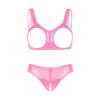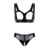Women Ladies Bare Chest Sexy Lingerie Set Wet Look Patent Leather Underwear Suit Open Cups Bras with Crotchless Briefs Clubwear
