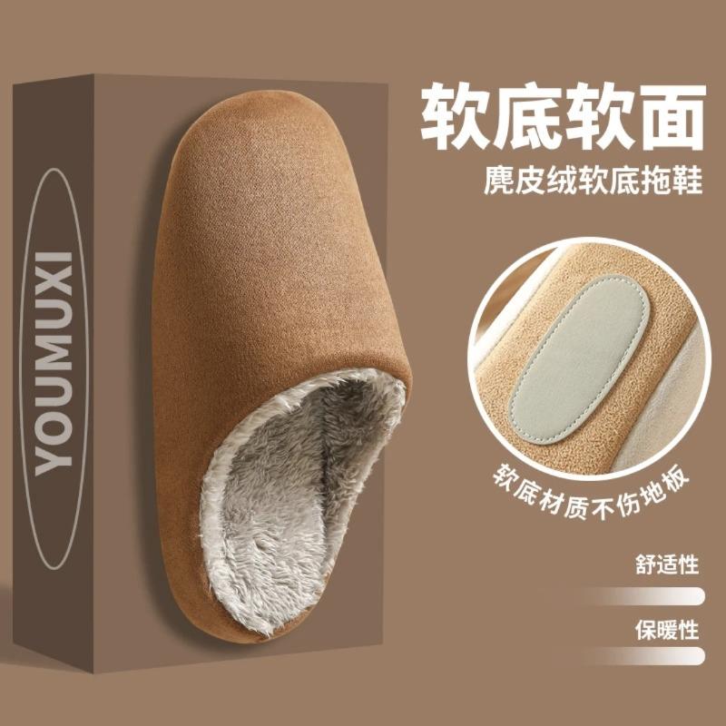 Herbst- und Winter-Doppelzwecktasche mit Baumwollpantoffeln Damen lautlos Zuhause Holzboden weicher Boden Hirschleder Samtboden warme Paarpantoffeln Herren