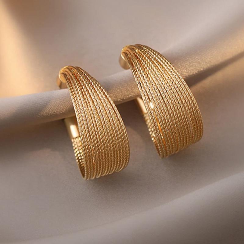 1pair Heavy Industry Drawbench Textured Light Luxury Metal C-shaped Earrings