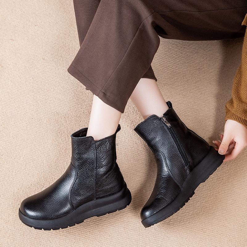 Erste Schicht Rindsleder Schaffell integrierte kurze Stiefel Winter Samt warm Baumwollschuhe flache rutschfeste Mutter Schneestiefel