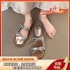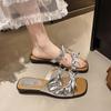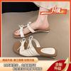 Schleifenslipper Damen Sommerbekleidung Mode eckige Zehenpartie flacher Boden mit Rock schöne Strandsandalen
