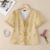 VONDA Damen V-Ausschnitt Kurzarm Knöpfbar Rüschensaum Druck Lässige Bluse