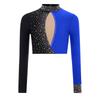 Mädchen Eiskunstlauf Oberteil Glitzernde Strasssteine Colorblock Design Schlüsselloch Rücken Crop Top