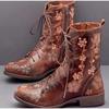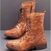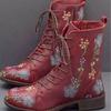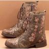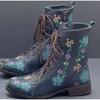 Wish hot sale new flat-bottomed lace-up embroidered Martin boots women's autumn and winter new embroidered medium boots