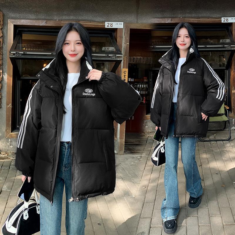 Students Korean Three-bar Color Matching Cotton-padded Jacket Coat Female Winter Thick Warm College Loose Collar Bread and Clothing.