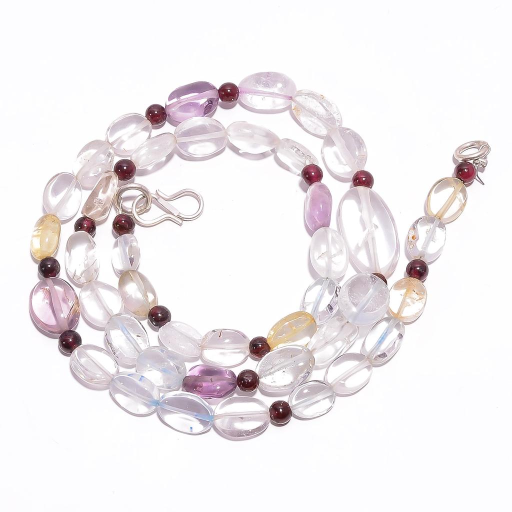 Naturkristall Amethyst Granat Edelstein Glatte Perlen Halskette 4-17mm 18" UB7844 UB-7844