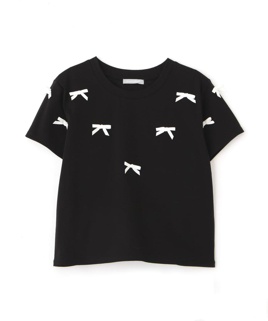 This eye-catching T-shirt features a contrasting ribbon. The ribbon adds a playful touch, creating a simple yet glamorous look. Its cute yet casual feel makes it perfect for everyday wear. It pairs well with a wide range of bottoms, including denim, skirts, and shorts, creating a feminine casual look or street style. *Colors may appear differently depending on the lighting conditions at the time of photography.