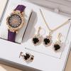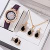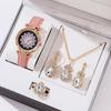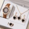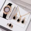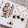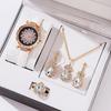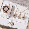 5-teiliges Set Roségold Luxusuhr Damen Ring Halskette Ohrring Strass Mode Armbanduhr Lässig Damen Armband( Kein Kasten)