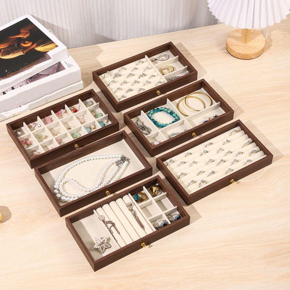 Rings Necklace Wooden Jewelry Box Multi-layer Jewelry Storage Case Fashion Jewelry Holder Vacation