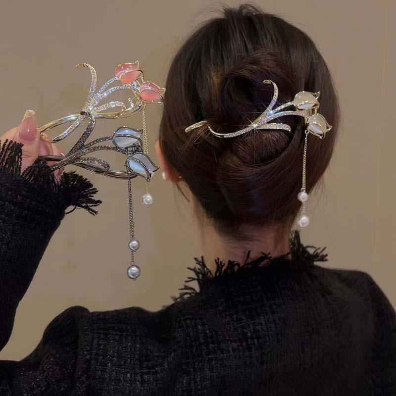 Neue Retro Tulpen Quaste Gedrehte Spange für Damen Mode Elegant Opal Stein Pferdeschwanz Haarnadel Einzeilige Spange Haaraccessoires