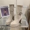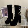 Mode Herbst Winter Dick Hoher Absatz Damen Stiefeletten Mode Slipper Vintage Plateau Weiblich Western Kurze Stiefeletten