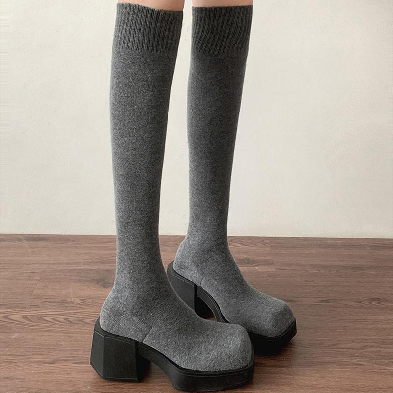 Modische Herbst Winter Damen Elastische Schlankmachende Socken Strumpfhosen Mode Damen Dicker Absatz Über dem Knie Hohe Stiefel