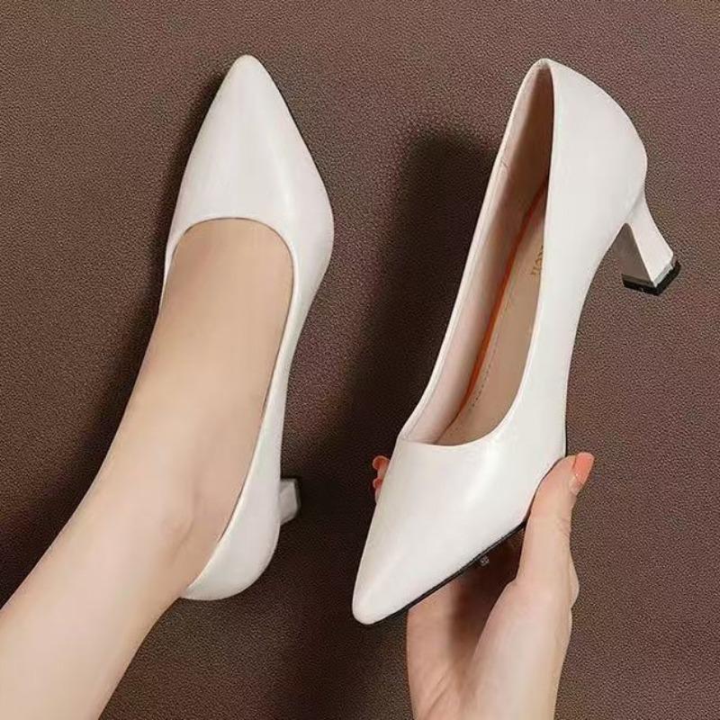 Echtes weiches Leder neuer Frühling dünner Absatz spitze Zehen flacher Ausschnitt Temperament Damen kleine Lederschuhe mittlerer Absatz Einzelne Schuhe Damen