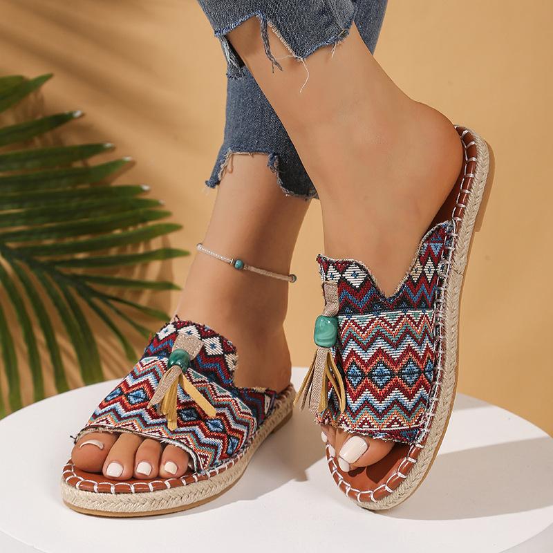 Mode 2025 Böhmische Flache Hausschuhe Damen Outdoor Sommer Neu Quaste Strandsandalen Große Größe Cross-Border Hausschuhe für Erwachsene