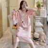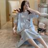 Erleben Sie Komfort und Stil mit diesem entzückenden Umstandspyjama, perfekt für die warmen Sommermonate.. Dieser Pyjama aus weicher künstlicher Seide hat ein niedliches Cartoon-Design, das Ihrer Homewear-Kollektion einen Hauch von Spaß verleiht.. Das kurzärmlige Oberteil sorgt für Atmungsaktivität, während das Milchseidenfell ein sanftes, angenehmes Gefühl auf der Haut bietet.. Diese Pyjamas sind für werdende Mütter entworfen und sorgen dafür, dass Sie während Ihrer Schwangerschaft schick und gemütlich bleiben.