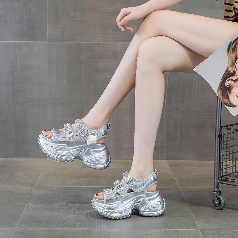Mode 8cm Mesh Synthetikleder Klobige Sandalen Sommer Damen Plateau Keil Kristall Sportliche Sneaker Damen Gladiator Sandalen Frau