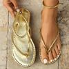 Mode Zehensteg Gold Silber Gladiatorsandalen Damen 2025 Sommer Knöchelriemen Flache Sandalen Frau Übergröße 43 Römische Strandschuhe Schuhwerk