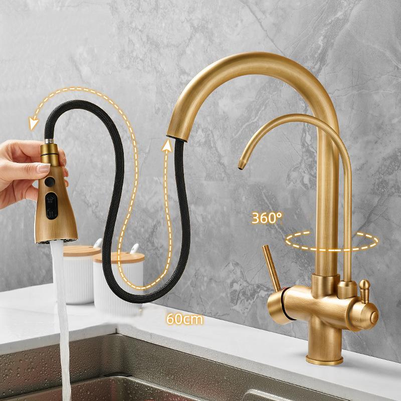 Antique Drinking Filtered Water Kitchen Faucet Purification Tap Dual Handles Faucet Kitchen Sink Tap Hot and Cold water Mixer