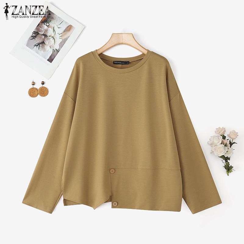 ZANZEA Damen Lässig Rundhals Locker Langarm Pullover Bluse