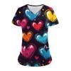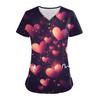 Damen-Oberteil mit Knopfleiste und V-Ausschnitt, modisch, lässig, mit Weihnachts- und Valentinstags-Print, Top für Krankenschwestern, Kasacks für Damen, 2 Taschen