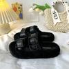 Mode Damen Pelz Flip Flops dicker Boden Beflockung Zeit Schuhe Outdoor Hausschuhe Herbst Hausschuhe Römerschuhe Plüschstoff 2024