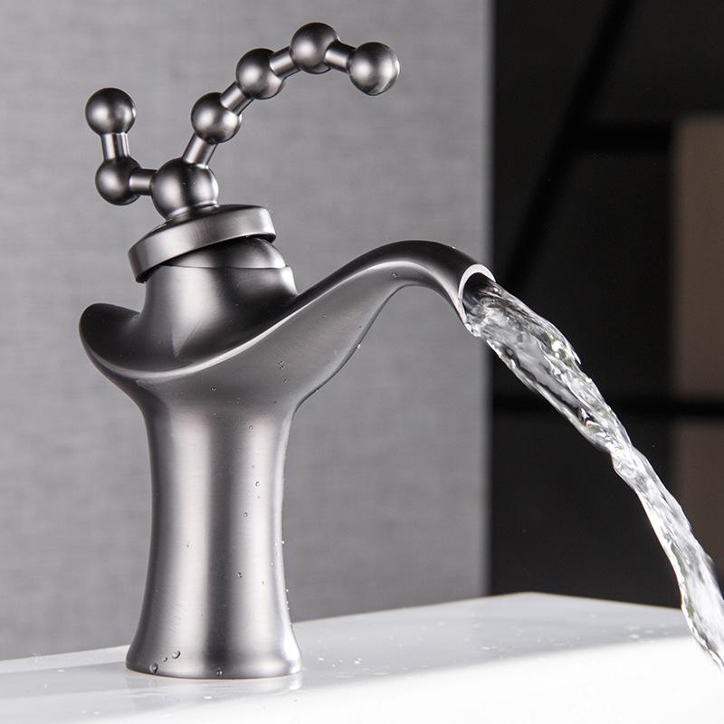 Retro Table BasinFaucet Brass Gun Gray Hot and Cold Mixed Faucet Deck-mounted Sink Tap Creative Single Handle Single Hole Tap