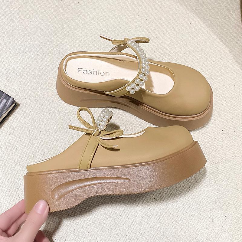 Mode Schleife Plateau Ballerinas Damen Hausschuhe Mode Perlenriemchen Slingback Schuhe Kleid Frau Pantoletten Schuhe 2025 Sommer Lässig Mujer Zapatos