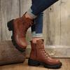 Mode Gürtelschnalle Plateau Kampfstiefel Damen Klobige Absätze Schnürstiefeletten Frau Seitenreißverschluss PU Leder Kurze Stiefeletten Übergröße 43