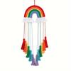 Böhmischer Regenbogen Wandbehang mit handgemachter Spitze, bunten Quasten mit Schleifen und Pompons Böhmische Heimdekoration