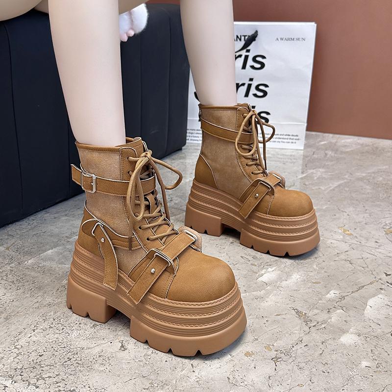 Modedesigner Damen Kurze Stiefel Neu Herbst Winter Wildleder Leder Klobige Stiefel Gladiator High Platform Schnalle Goth Stiefel Mujer Zapatos