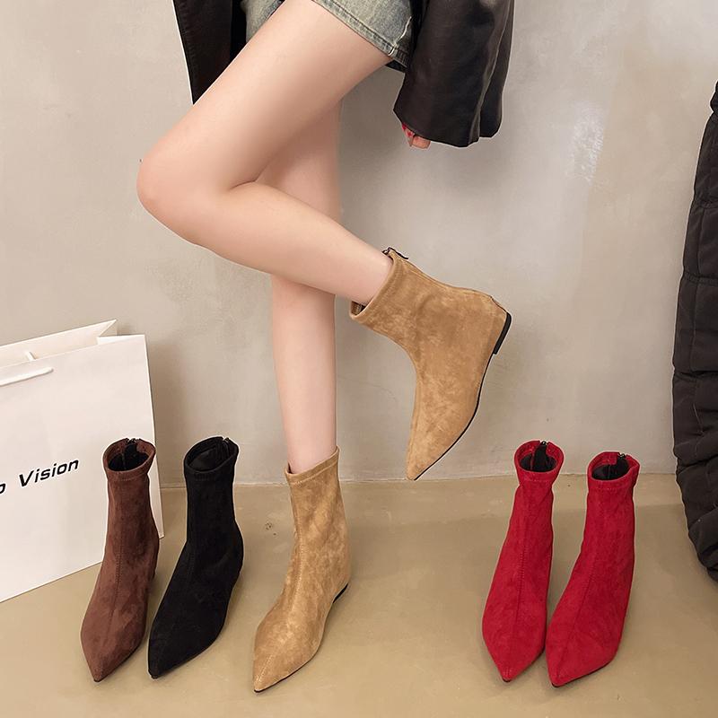 Mode 2025 Herbst Winter Spitz Zehen Knöchel Stiefel Damen Designer Vintage Dünne Niedrige Absatz Schuhe Modern Kurze Botas Zapatos De Mujer