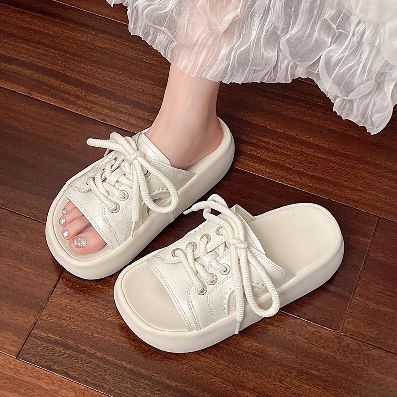 Mode Damen Mode Clogs Schnür-Plateau-Slipper Sommerschuhe Weiche EVA Anti-Rutsch Damen Strand Straßen Slides Dicksohlige Sandalen