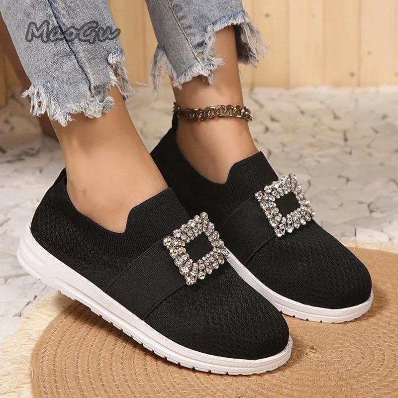 Modische Strass-Netz-Strick-Slipper für Damen Atmungsaktive Slip-On Casual Flats Damen Herbst 2025 Weiche Sohle Laufschuhe Größe 36 42