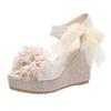 Modische Sandalen Damen Blumenmuster Schleifchen Dekor Plateau Keil Espadrilles Plateau Schleife 10CM Hohe Absätze Damen Hausschuhe Schuhe