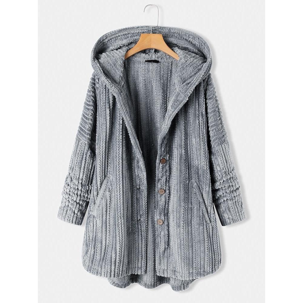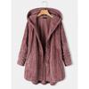 Damen Winter Kapuzen-Cardigan Fleece-Mäntel Langarm Einfarbig Teddybär-Jacke Einreihiger Oberbekleidungsmantel mit Tasche