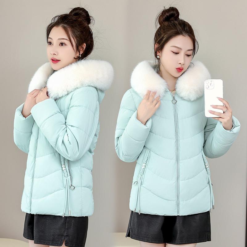 Big fur collar short cotton-padded women's cotton-padded jacket slim down cotton-padded jacket temperament thickened waist winter jacket