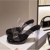 Mode Hohe Qualität Transparentes PVC High Heel Slipper Damen Sommer Peeptoe Pantoletten Sandalen Elegant Quadratische Plateau Sandalen Party Pantolettenabsätze