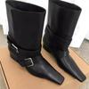 Rindslederversion~ Modische Damenstiefel Nische Streetstyle Laufsteg eckige Spitze Western-Cowboystiefel Damen dicker Absatz Leder Kurzstiefel