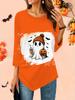 Damen Locker Rundhals Dreiviertelarm T-Shirt 3D Halloween Muster Ideales Halloween- und Weihnachtsgeschenk