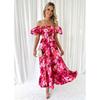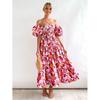 2025 Europe and America Cross Border Spring/Summer New Arrival off-Neck Print Puff Sleeves Silm Mid-Length Tulle Tutu Dress Dress