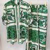 Summer and Autumn Beautiful Summer New Arrival Women's Clothing Fashion Style Lapel Long Sleeves Button Shirt Positioning Printed Pants Suit