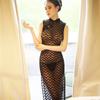 Sex underwear perspective black retro cheongsam hollow mesh uniform set temptation lace stand-up collar cheongsam of the Republic of China