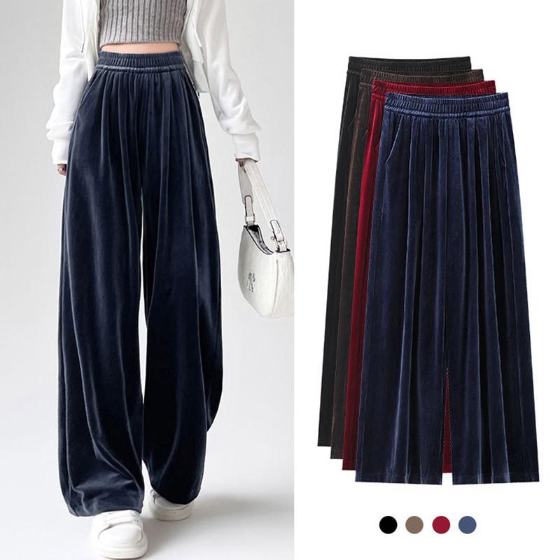 Goldener Samt Weitbeinige Hose Damen Herbst und Winter Locker Hochtailliert Lässig Drapierend Gerade Wischende Lange Hose