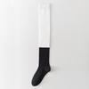 Damen Oberschenkelhohe Socken für Herbst und Winter, Schwarz und Grau Patchwork Wadensocken kombiniert mit Loafern und Kniestrümpfen
