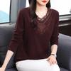 Damenbekleidung Herbst Winter Stilvolle Strassspitze Patchwork Dicke Basic T-Shirts Damen Einfarbig V-Ausschnitt Langarm Locker Oberteile