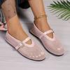 Schuhe in Übergröße, Ausgeschnittene Sandalen, Damen Flach, Zehenkappe mit einem Knopf